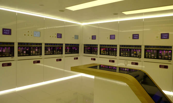 Le istruzioni per l’uso prevedono il metodo plug&play per i vini fermi, l’avventore insomma posiziona il bicchiere e voilà, la dose è già precalibrata, mentre per gli spumanti sarà il sommelier ad aprire la teca e servirvi. Insomma idea non malvagia, ma torniamo sulla riflessione che la presenza dei vini determinata dall’acquisto dello spazio-dispenser ha creato una panoramica che tutto sommato è incompleta della realtà italiana. Non sperate di trovare dei campioni ad alto valore, così come nemmeno dei nomi che hanno fatto la storia, almeno non tutti, anzi pochissimi. Niente di quanto ognuno vorrebbe, ma dopotutto si trattava di una scelta piuttosto dispendiosa, comunque non entriamo nella polemica sul costo/spazio/dispenser di